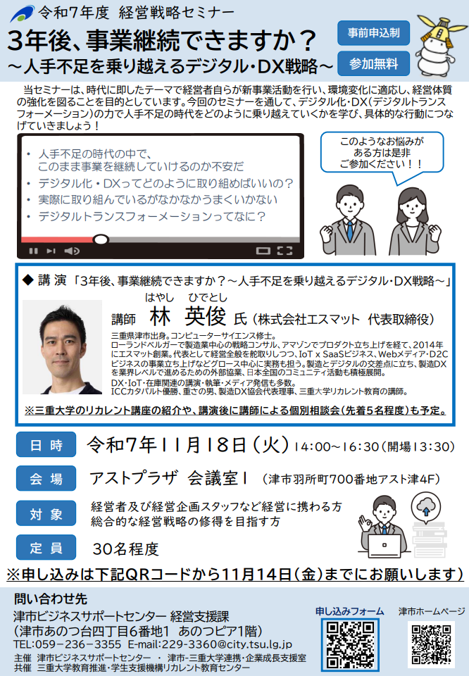 令和7年度経営戦略セミナー「3年後、事業継続できますか?~人手不足を乗り越えるデジタル・DX戦略~」